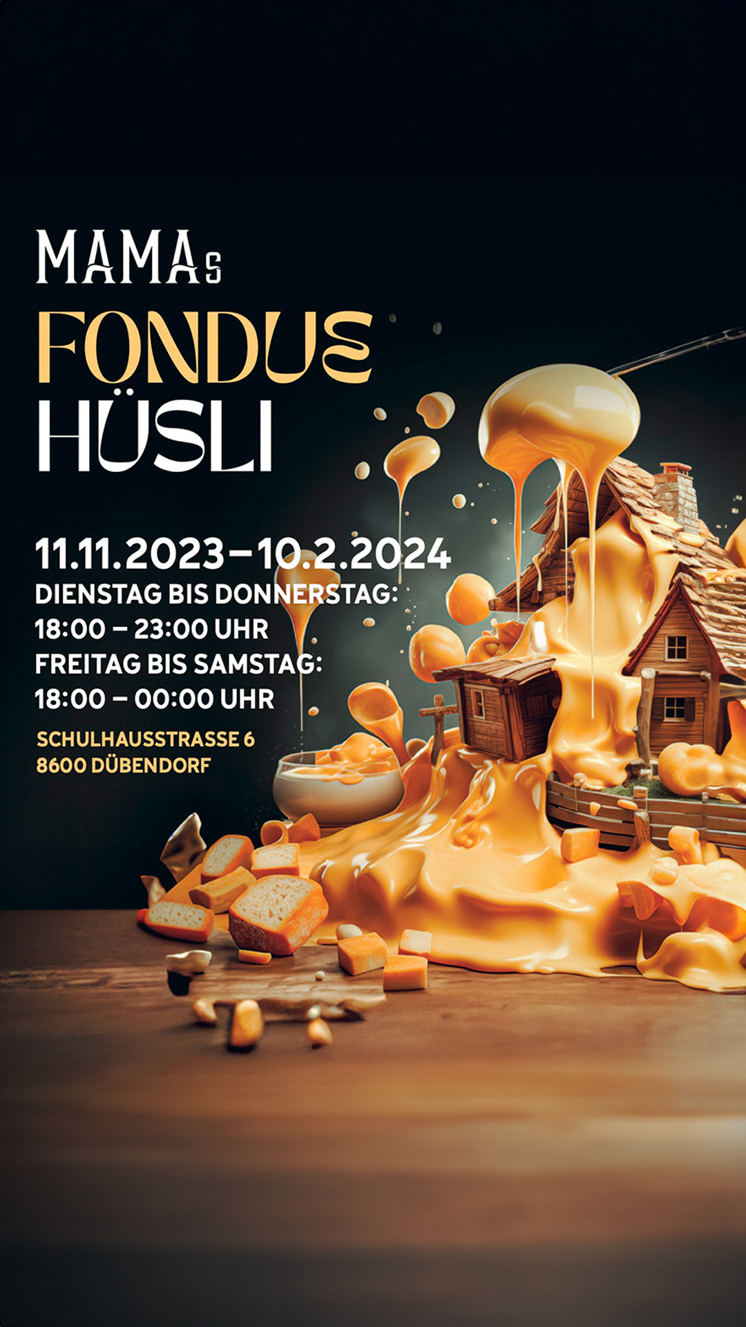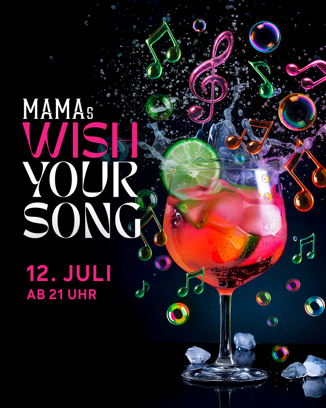 Für die Social-Media-Kommunikation von MAMA’s werden fortlaufend neue Visuals benötigt, um die regelmäßig stattfindenden Events ansprechend zu präsentieren. Die Visuals sind jeweils KI generiert